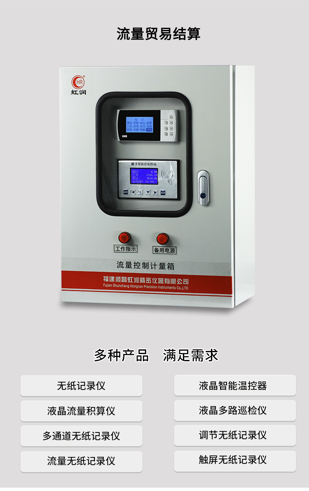 虹潤公司是專業(yè)生產(chǎn)流量積算儀的國家專精特新“小巨人”企業(yè)。生產(chǎn)的液晶熱(冷)量積算記錄儀,具有適配各類測量介質(zhì)及裝置,通道之間相互隔離,帶貿(mào)易結(jié)算功能,RS485/RS232通訊等特點(diǎn)。產(chǎn)品獲得一種流量積算儀、一種平板式無紙記錄儀等2項(xiàng)國家發(fā)明專利,主持起草物聯(lián)網(wǎng)智能記錄儀表通用技術(shù)條件、封閉管道中流體流量的測量、基于HART協(xié)議的電磁流量計(jì)等3項(xiàng)國家標(biāo)準(zhǔn),以及通信系統(tǒng)多通道數(shù)據(jù)采集控制終端規(guī)范、艦船用電磁流量計(jì)等2項(xiàng)軍用標(biāo)準(zhǔn),以及空間數(shù)據(jù)與信息數(shù)據(jù)傳輸系統(tǒng)等2項(xiàng)航天標(biāo)準(zhǔn)。參與國際5G標(biāo)準(zhǔn)制定,取得液晶流量熱能積算控制儀等4項(xiàng)相關(guān)軟件著作權(quán)。產(chǎn)品廣泛應(yīng)用于石化、冶金、制藥、環(huán)保能源、農(nóng)業(yè)灌溉、污水處理系統(tǒng)等諸多領(lǐng)域。