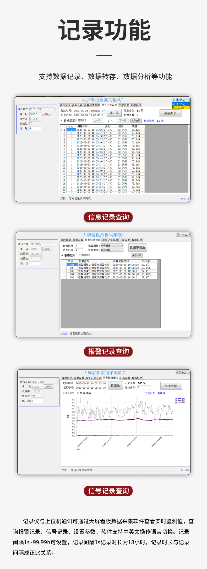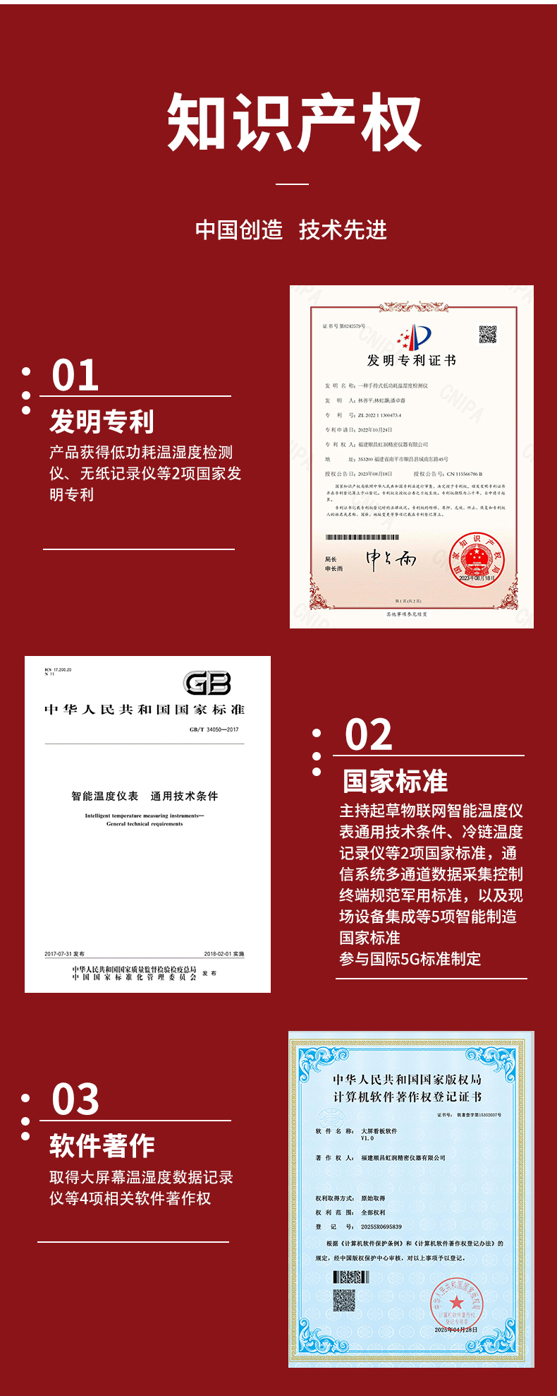 虹潤公司是專業(yè)生產(chǎn)環(huán)境監(jiān)測儀表的國家專精特新“小巨人”企業(yè)。生產(chǎn)的大屏噪音溫濕度記錄儀,具有高清大屏顯示,數(shù)據(jù)記錄與轉(zhuǎn)存,同步觸發(fā)可靠預(yù)警,RS485或以太網(wǎng)通訊等特點(diǎn)。產(chǎn)品獲得一種手持式低功耗溫濕度檢測儀、無紙記錄儀等2項(xiàng)國家發(fā)明專利,主持起草物聯(lián)網(wǎng)智能溫度儀表通用技術(shù)條件、冷鏈溫度記錄儀等2項(xiàng)國家標(biāo)準(zhǔn),通信系統(tǒng)多通道數(shù)據(jù)采集控制終端規(guī)范軍用標(biāo)準(zhǔn),以及現(xiàn)場設(shè)備集成等5項(xiàng)智能制造國家標(biāo)準(zhǔn),參與國際5G標(biāo)準(zhǔn)制定,取得大屏幕溫濕度數(shù)據(jù)記錄儀等3項(xiàng)相關(guān)軟件著作權(quán)。產(chǎn)品廣泛應(yīng)用于電子制造、醫(yī)療科研、倉儲(chǔ)管理、畜牧養(yǎng)殖、建筑工程等諸多領(lǐng)域。